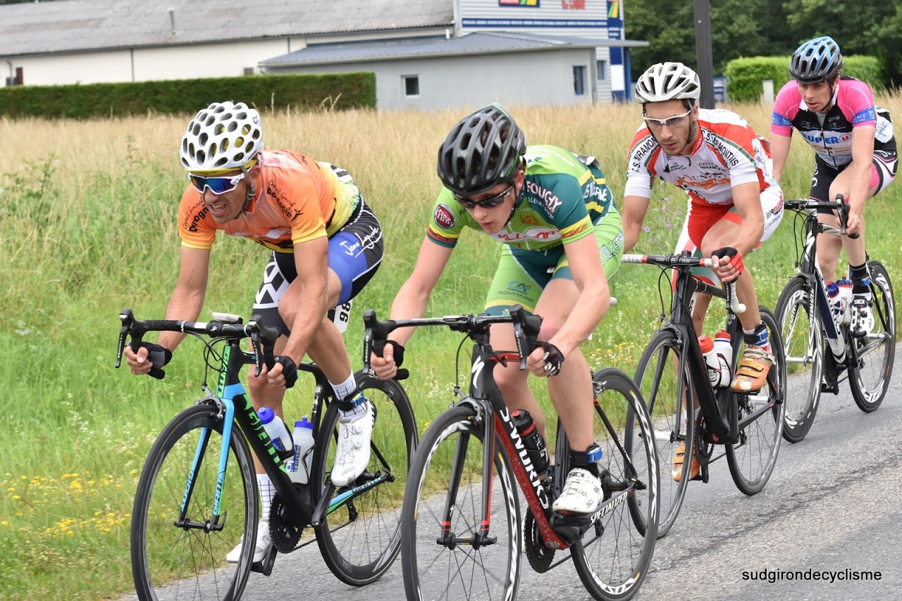 Ils possédaient 45 secondes d’avance sur le peloton à Fargues sur Ourbise quand un contre s’organisa avec Kévin Couette , Joffrey Ledoux , Frédéric Bonneau , Xavier Lartigue , Romain Salles , Philippe Brossais et Nicolas Giraud.