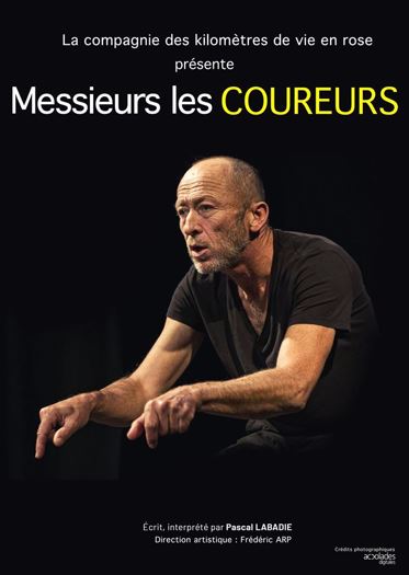 Le seul en scène « Messieurs les Coureurs » relate la vie d’un ancien coureur cycliste girondin, Pascal Labadie. Ses victoires, ses défaites, ses interrogations, les ambiances de courses cyclistes de village du tour de France des années 70/80 y sont retracées avec humour. Il y a aussi toute une partie filiation et anecdotes autour de ses propres parents et de différents de personnages rencontrés ici et là. Les inquiétudes de la maman, la fierté du papa. Spectacle drôle et émouvant qui s’adresse à tout le monde, que l’on soit fan de cyclisme ou non. Tout Public.