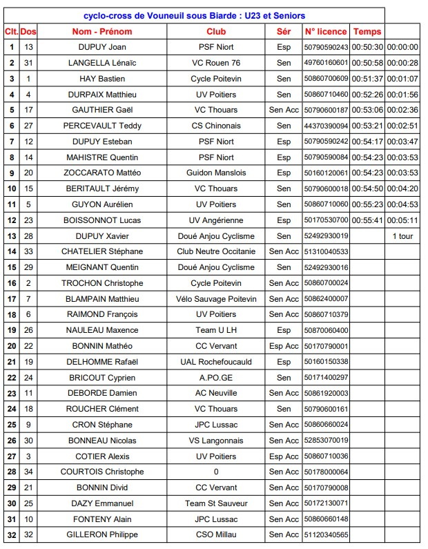 Joan Dupuy vainqueur du cyclo-cross de Vouneuil sous Biard
