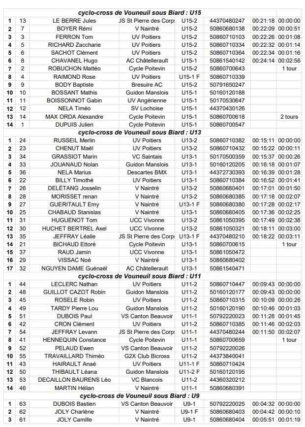 Ce dimanche 26 Novembre 2023, le Cycle Poitevin organisait son 4ème cyclo-cross de la saison avec l’épreuve de Vouneuil sous Biard.