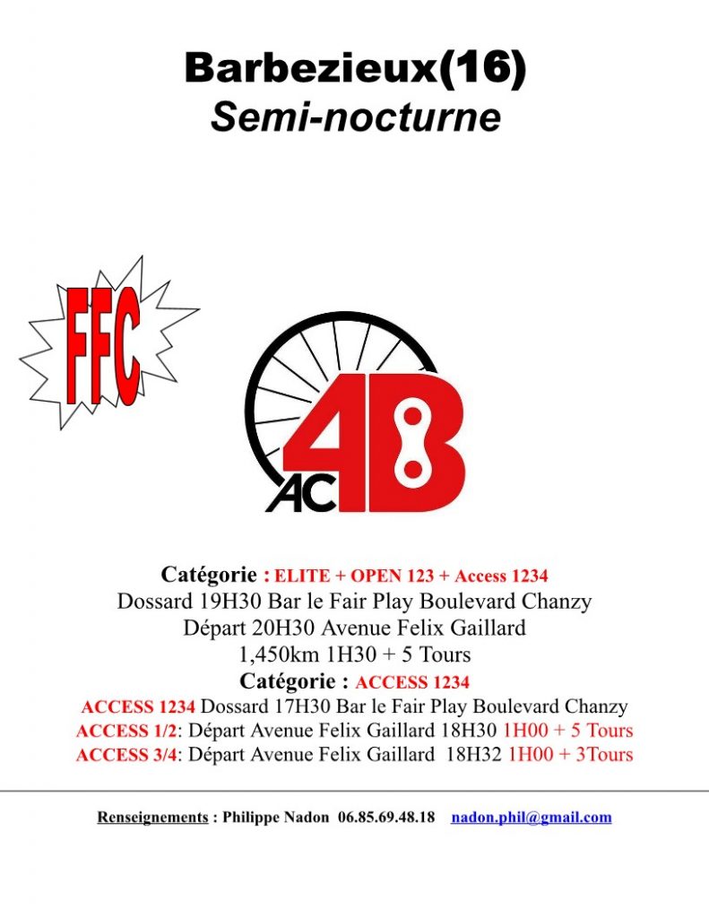 Mercredi 29/05 semi-nocturne de Barbezieux