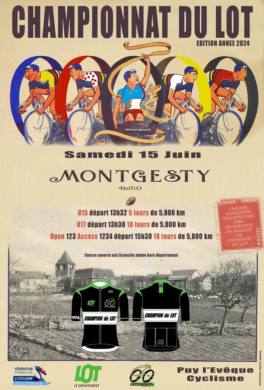 Le samedi 15/06, Puy-L’Evêque Cyclisme organise le Championnat du Lot à Montgesty.