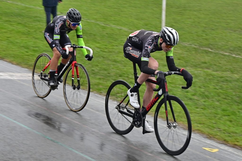 Nolan De Reuter (Gers Cycling) lors du Scratch et la course Tempo s’imposa aisément mais dut laisser la victoire de la course handicap aux 2 sociétaires du CC Marmande 47, Dorian Kazusba (1er) et Léa Langella (2ème).