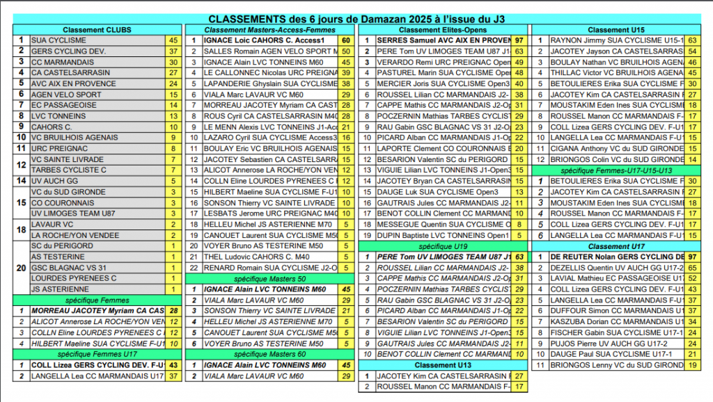 Damazan, 3ème des 6 jours 2025, résultats-photos