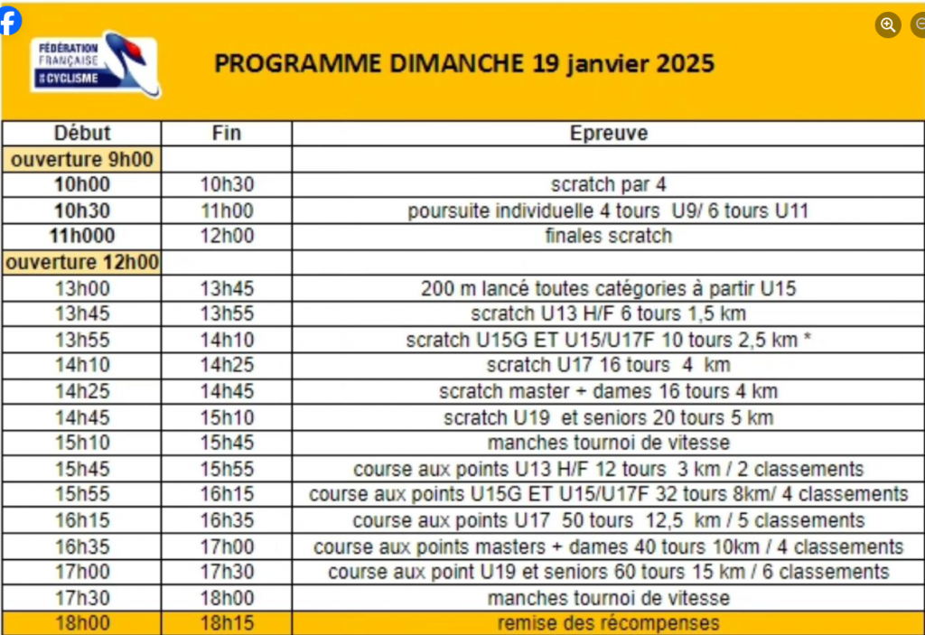 Dimanche 19/01: Tournoi de la Galette sur le vélodrome Raymond Poulidor