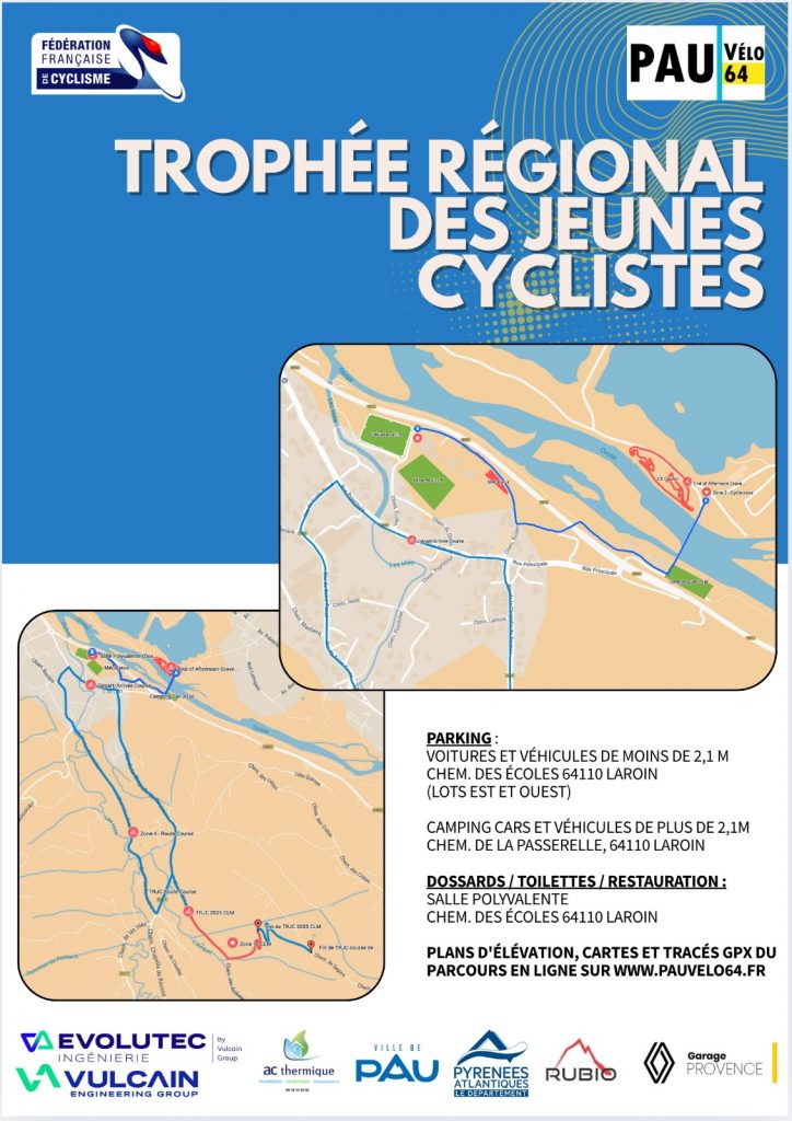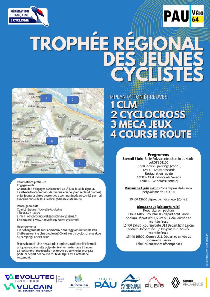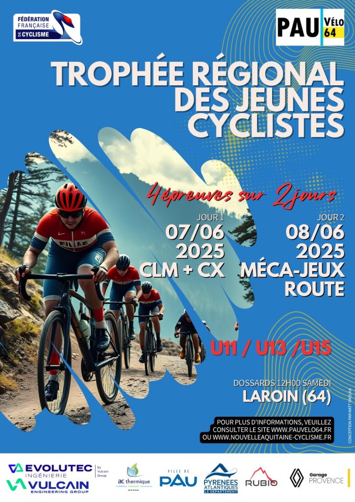 Le weekend de Pentecôte, les 7 et 8 juin 2025, le Pau Vélo 64 organise à Laroin (64) le Trophée Régional des Jeunes Cyclistes.