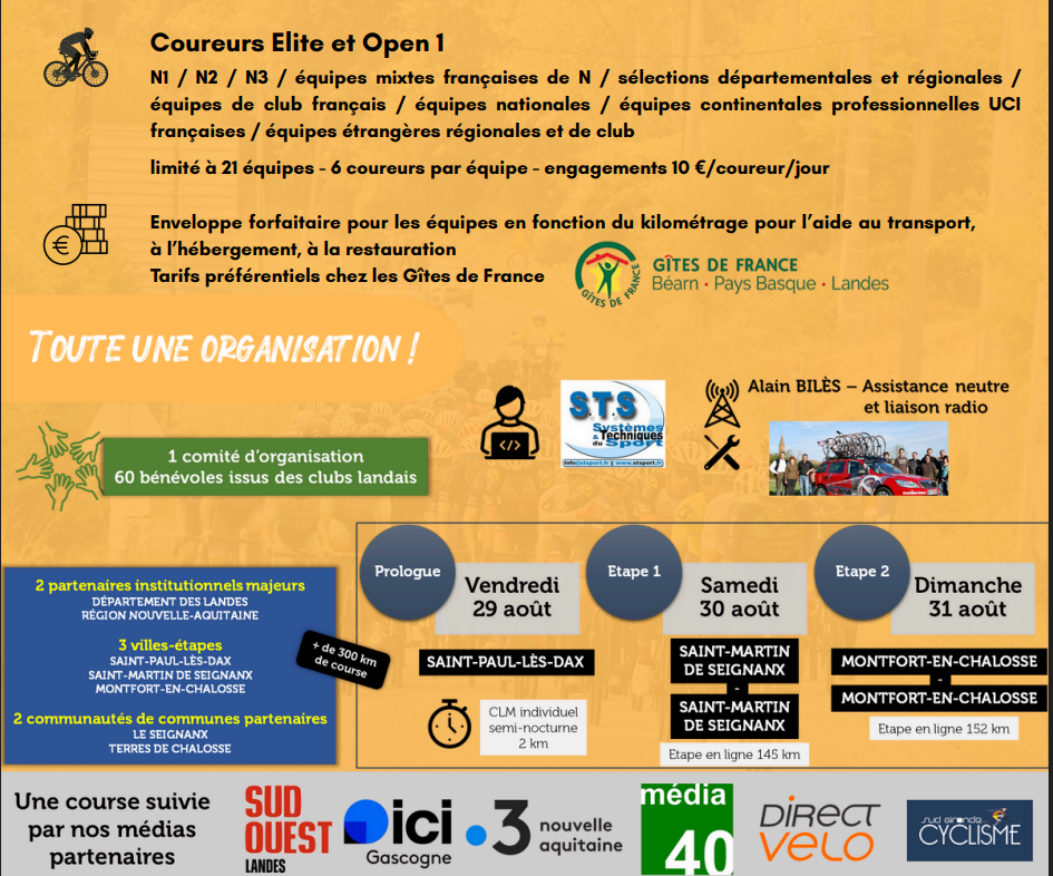 Pour tout contact : Bastien LAMUDE / 06-35-96-18-49 / cyclisme.ffc40@gmail.com