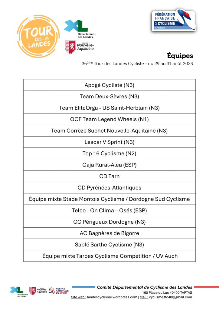 ORGANISATION : COMITE DEPARTEMENTAL DES LANDES DE CYCLISME