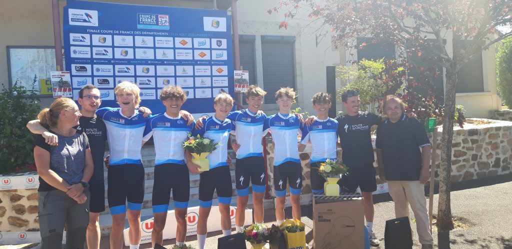 JULIEN BREUGNOT, champion de France du contre la montre individuel et déjà meilleur U17 de France sur l’ensemble de la saison a confirmé son talent . Celui que certains speakers nomment le nouveau Paul Seixas a gagné sa 19 victoires de la saison en remportant dimanche matin , l’épreuve en ligne de la coupe de France des départements. Le jeune Bourguignon, licencié dans le Jura a  repris un groupe d’échappées à 7 kilomètres de l’arrivée. Profitant de ses qualités de chronoman, il s’est envolé vers la victoire confirmant tous ses qualités. Il s’impose devant 1 peloton où figure Ladagnous (champion d’Aquitaine)  ,Zamparutti et Derome du Cd Haute Garonne, Le Morvan, Pineau, Vergne Charvy Cd 17,Rey Cd64 ,Puntous,Sommer Cd Haute Garonne, Ricou et Malgorn CD Vienne ,Castera CD 64,Mael Lamiraud Cd Dordogne, Paul Quichaud CD Haute Vienne  ,