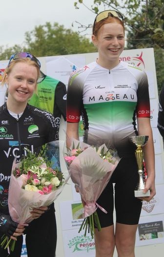Les U17F Sarah CASTANO (Dordogne Sud), a remonté ses 20 points qui la séparait de Thaïs BARRIER PAIVA (Dordogne Sud) qui a fait l’impasse à Cendrieux, en revenant lauréate du classement général, et en prenant la 5ème place du jour avec les seniors, récompensant l’assiduité au challenge du Conseil départemental cycles Mazeau.