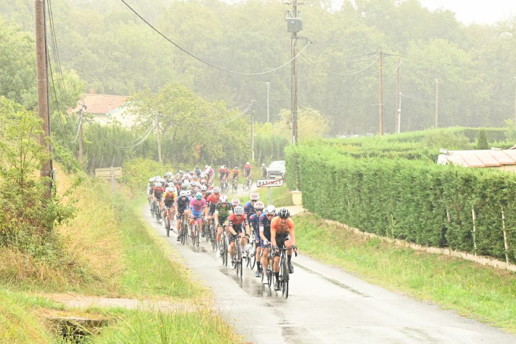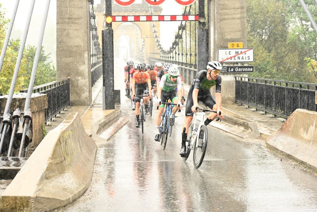 Sous l’averse l’avance des échappés mit du temps à grandir, mais à Razimet elle atteignait 1 minute 10.