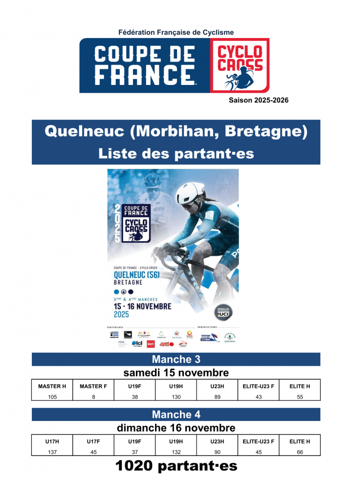 Coupe de France à Quelneuc, les engagé(e) et grilles de départ