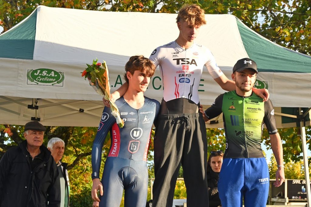 Pierre Mathieu Pellier dépassait Audric Pasquet qui semblait fléchir dans les dernières des 50 minutes de course mais le duo de Dordogne Sud Cycliste ne pouvait rien contre un Dylan Valade impressionnant.