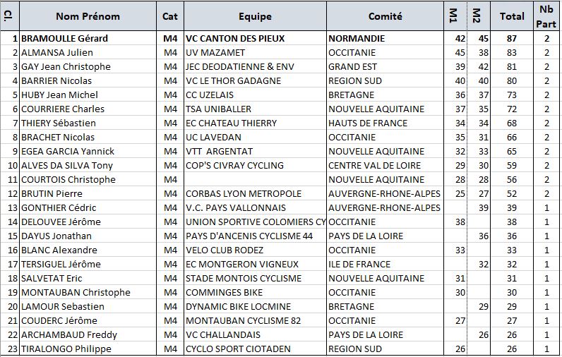 5 GONTHIER Cédric M4 AUVERGNE-RHONE-ALPES V.C. PAYS VALLONNAIS à 01’39 »