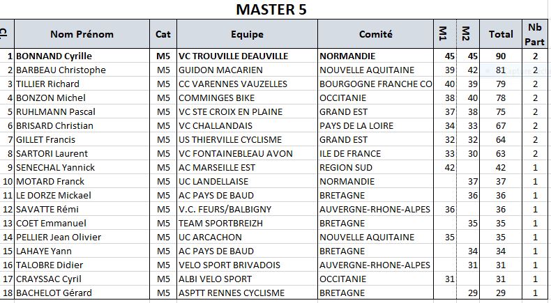 36 TALOBRE Didier M5 AUVERGNE-RHONE-ALPES VELO SPORT BRIVADOIS à 2 Tr