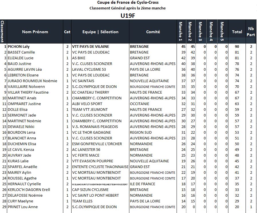 12 WEINGARTEN Audrey CENTRE VAL DE LOIRE TEAM CX CHARTRES à 05’50 » 31