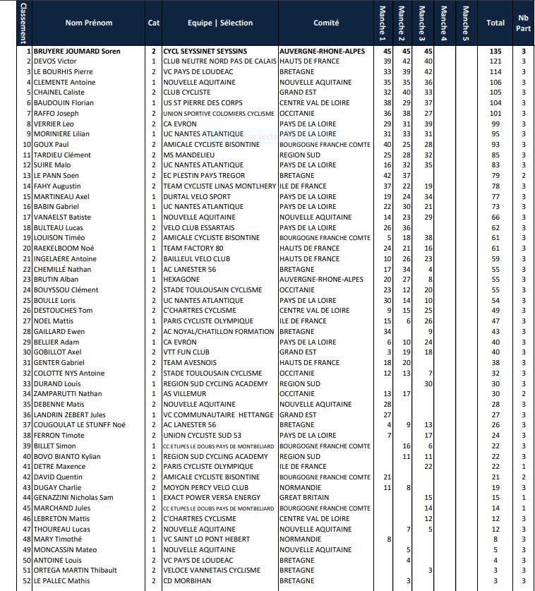 11 DUBAU Lucas ILE DE FRANCE TEAM PELTRAX – CSD à 03’37 » 32