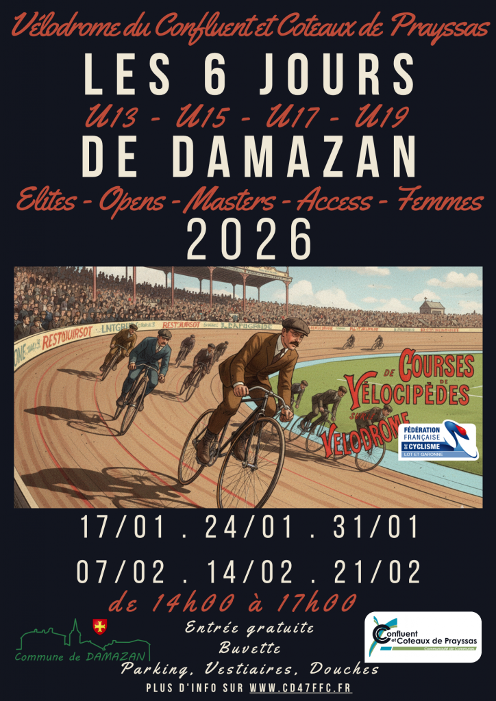 Attention : Ce prêt est strictement réservé aux participants aux 6 Jours de Damazan. L’attribution des vélos se fera lors de ces sessions.