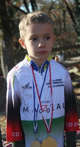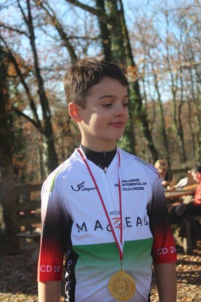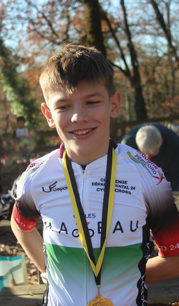 Les frères LAPEYRONNIE (EVCC Bergerac) ont été les premières révélations des cyclo crossmen en herbe, avec la victoire le jour des « Crouchaux » pour Lucas qui enlève le titre au classement général en rejoignant le Périgourdin Miguel ROUSSOT (CC Périgueux) au bénéfice de la dernière épreuve et qui a fait toutes les rencontres. Marius LAPEYRONNIE (EVCC Bergerac) prend la 3ème place, et leur compère bergeracois Louis ROBERT qui vient s’inscrire dans la suite du classement général.
