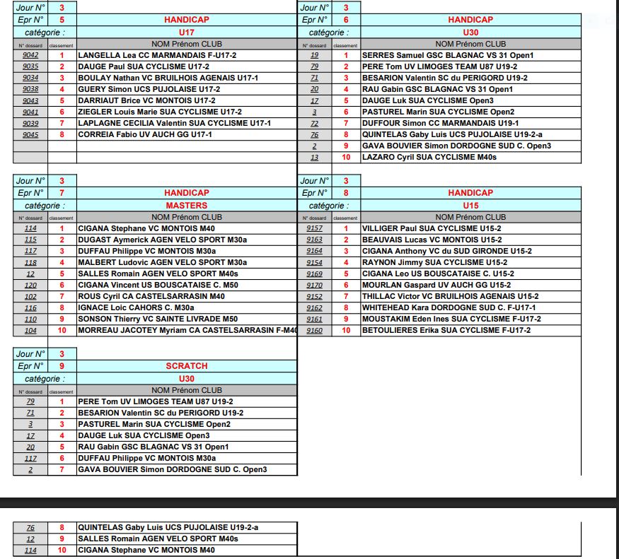 même si Ludovic Malbert (Agen Vélo Sport) progresse rapidement, tandis que le clairvoyant Stéphane Cigana (VC Montois) remporte la course handicap de la catégorie.