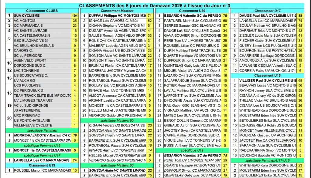 La mi-parcours des 6 Jours de Damazan a été marquée par la détermination et le courage. Malgré une météo capricieuse, le spectacle n’a pas quitté l’anneau, prouvant une nouvelle fois que le cyclisme en Lot-&-Garonne est une école de caractère.