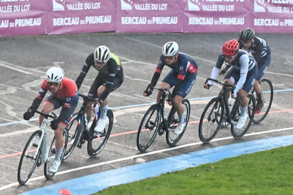 Gabin Rau, Valentin Bésarion (Sprinter du Périgord Vergt) , Marin Pasturel, Luk Daugé (SU Agen) et Tom Péré (UV Limoges Team U 87) ont mené un rythme infernal dans le scratch remporté par ce dernier.