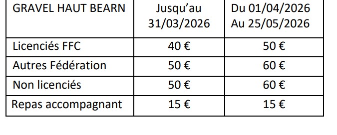 Le GRAVEL HAUT BEARN 2026 est organisé les 30/31 Mai 2026, sous l’égide de la FFC, par le FC OLORON