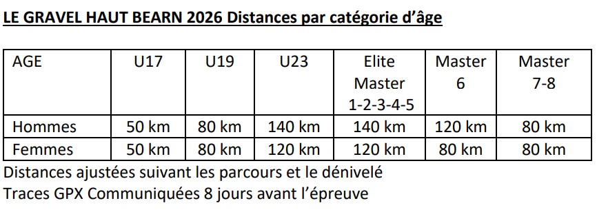 LE GRAVEL HAUT BEARN 2026 Distances par catégorie d’âge