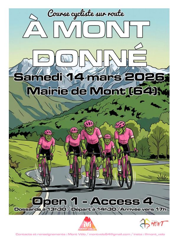 Dossards : 13h30, Mairie de Mont, Départ : 14h30 même endroit