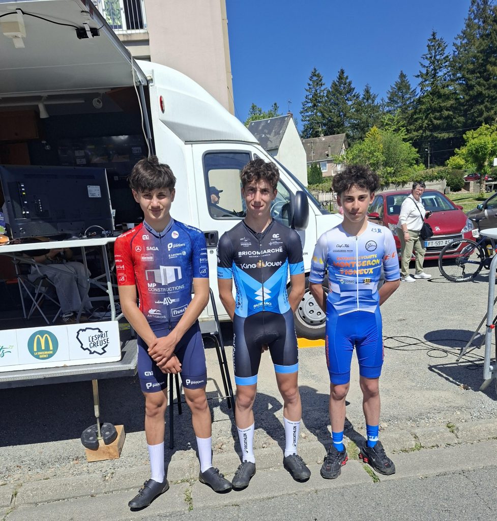 La journée débutée par un contre la montre individuel très sélectif, en U15 , le trés Grand favori Maxime Mignon s’est imposé devant le champion régional en titre de Nouvelle Aquitaine Merlin Russeil . Dans la catégorie U17 ,le Vététiste du Club de Creuse Oxygène , Enzo Leduc membres du Pole de Guéret en pleine progression s’est imposé devant le grand blond d’origine Belge , Maxime Vanaeslst le Dordogniau de Vélo Silex , Hugo Darthoux prend la 3ème place devant le 1ère année Ethan Schwindlig . Maxime Cazaillon du CAM Bordeaux est 5ème , Antoine Bonnaud Morlevat, leader termine lui 11ème .