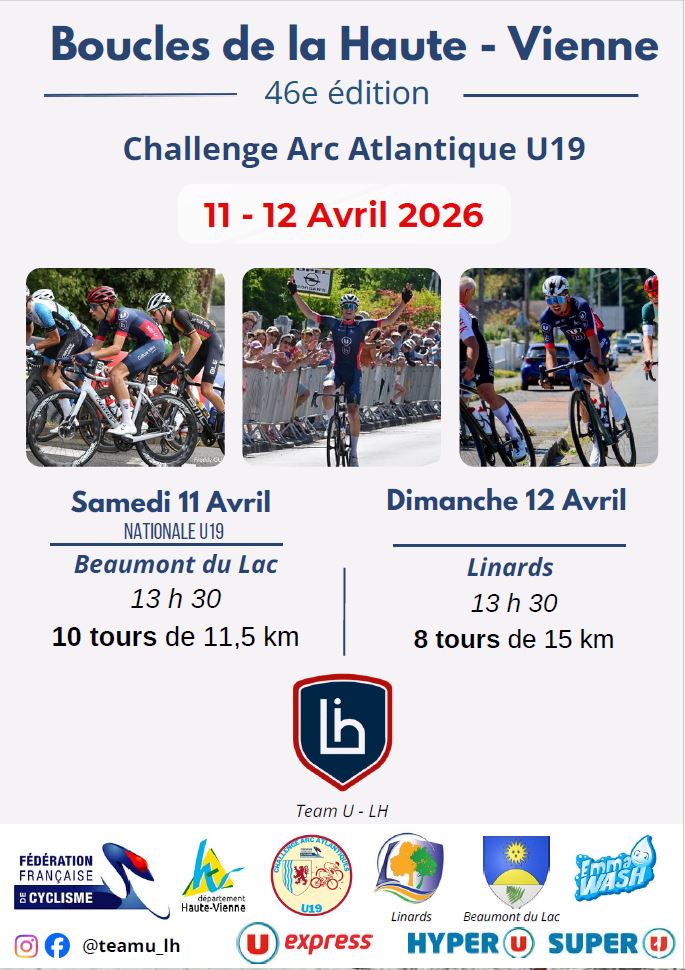 Après l’organisation de 45 éditions des Boucles de la Haute-Vienne mettant à l’honneur les meilleures catégories du monde amateur, nous sommes très heureux de proposer pour cette 46ème édition deux épreuves réservées à la catégorie U19 (ex catégorie juniors)… dixit Anthony DOUGE président du TEAM U-LH.