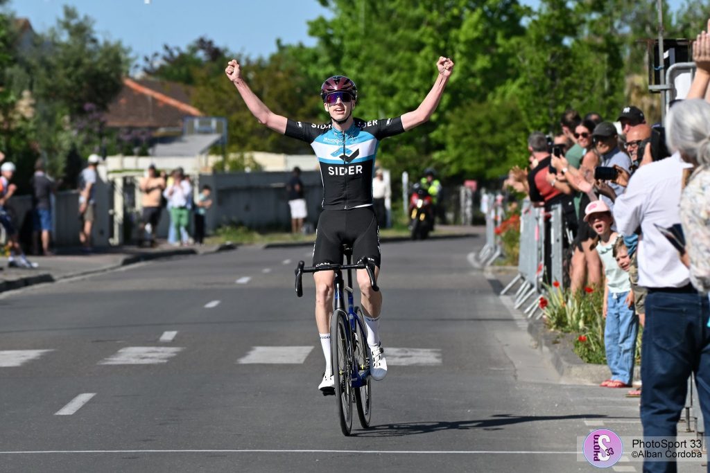Dans l’avant dernier tour, 4 coureurs prenaient quelques secondes d’avance (Mary du CAM, Milice d’Arcachon, Berton du Bouscat et Duffau du VC Montois) ; Antonin Mary plaçait une attaque décisive peu après le passage au podium et pouvait lever les bras pour la 1ère fois sur route avec 11 s d’avance. Une bien belle victoire pour ce coureur.